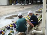 最後に、低学年が作った折り紙の花に自分の夢を書きました。