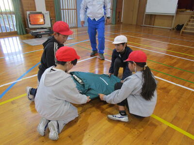 今日は、5年生の児童が、地域の方と一緒に防災訓練に参加しました。