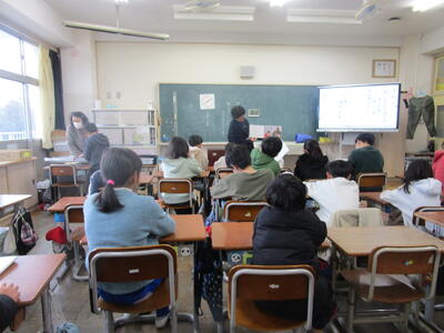 3・4年生に発表しました。3・4年生は、高学年の発表を真剣に聞き、質問や感想を伝えていました。