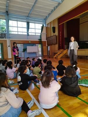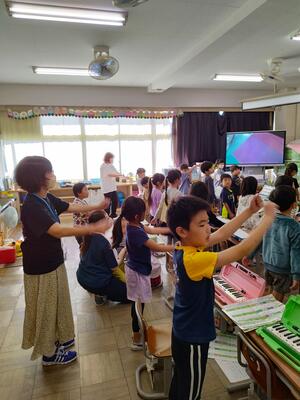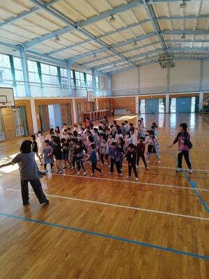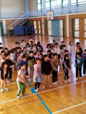 1・2年生が、合唱の練習を体育館で行いました。「アイアイ」を元気に歌っています。ポーズも、カッコイイです!