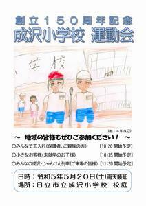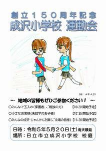 今年度は、「創立150周年記念運動会」です。地域に周知するために、ポスターを作成いたしましたので、公開いたします。