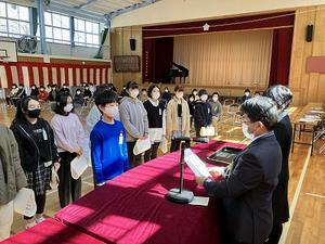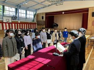 卒業を前に、賞状伝達を行いました。