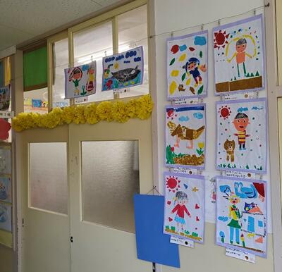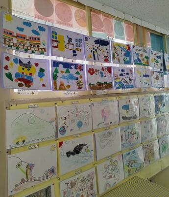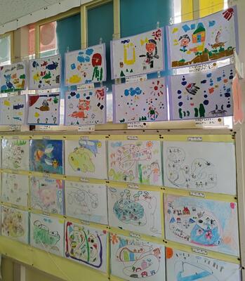 1年生は、色付きの画材で、自分の好きなものを作りました。