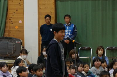 最後に、6年生から5年生に、校旗や子供会旗が引き継がれました。