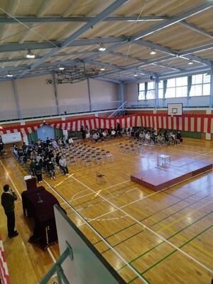 3年生〜6年生までの児童が体育館で、卒業式の練習をしました。