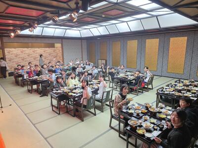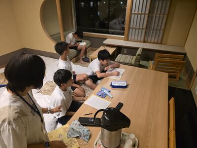 【修学旅行】夜の様子です 投稿: 作成者 (10/02) カテゴリー: 今日の出来事 みんなで美味しく夕飯をいただきました。 夕飯の後はお風呂(温泉)に入り、今は一日の振り返りを行っています。 明日も元気に活動できるように、ゆっくり休んでくださいね。 これで、修学旅行1日目の様子を終わりにします。 ご覧いただきありがとうございました。 Tweet -