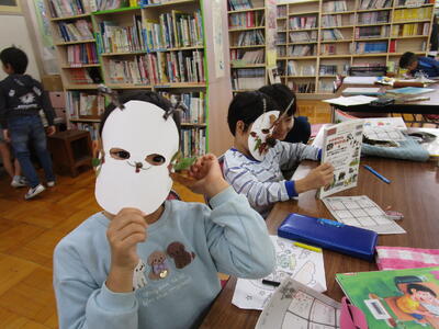 図書室でハロウィンイベント 投稿: 承認者 (20:11) 読書週間中の図書室ですが、昨日に引き続き、1年生がハロウィンイベントに参加しました。 授業でつくったお面をかぶって仮装した1年生が、図書室でビンゴをしたりくじを引いたりと、 楽しみながら本を読んでいました。 Tweet -